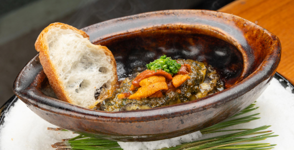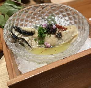 魚料理、肉料理、野菜料理と旬の食材で季節感をしっかりとお楽しみいただけるコースをご提供いたします。 お食事には、名物自家製の唐墨ご飯をご用意。