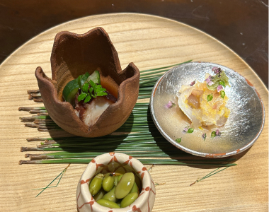 そして中村が自ら打つ十割蕎麦〆、と季節やこだわりを五感でお楽しみいただけるコースとなっております。